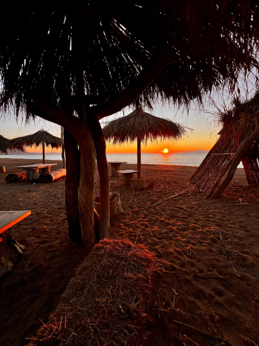 Overnatning direkte ved stranden med mulighed for bål og masser af ro. Vi hyggede med frokost i en efterladt palmehytte på stranden og nød stemningen, havet og friheden.