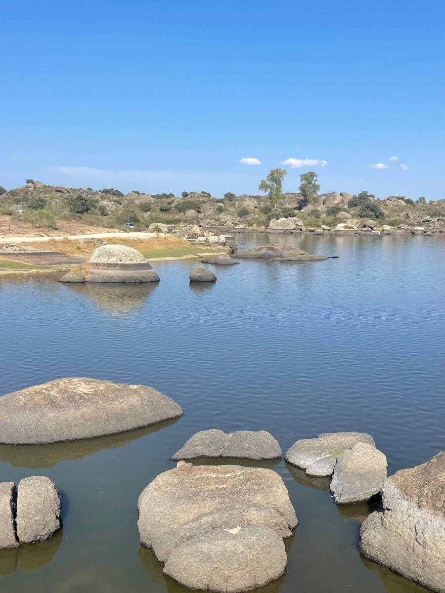 Ophold ved Charca del Barrueco de Abajo i Natural Monument Los Barruecos. Et helt særligt naturområde med store granitblokke, søer og et rigt fugleliv. Vi tilbragte en dag her og nød roen, udsigten og de åbne landskaber, hvor tiden nærmest står stille.