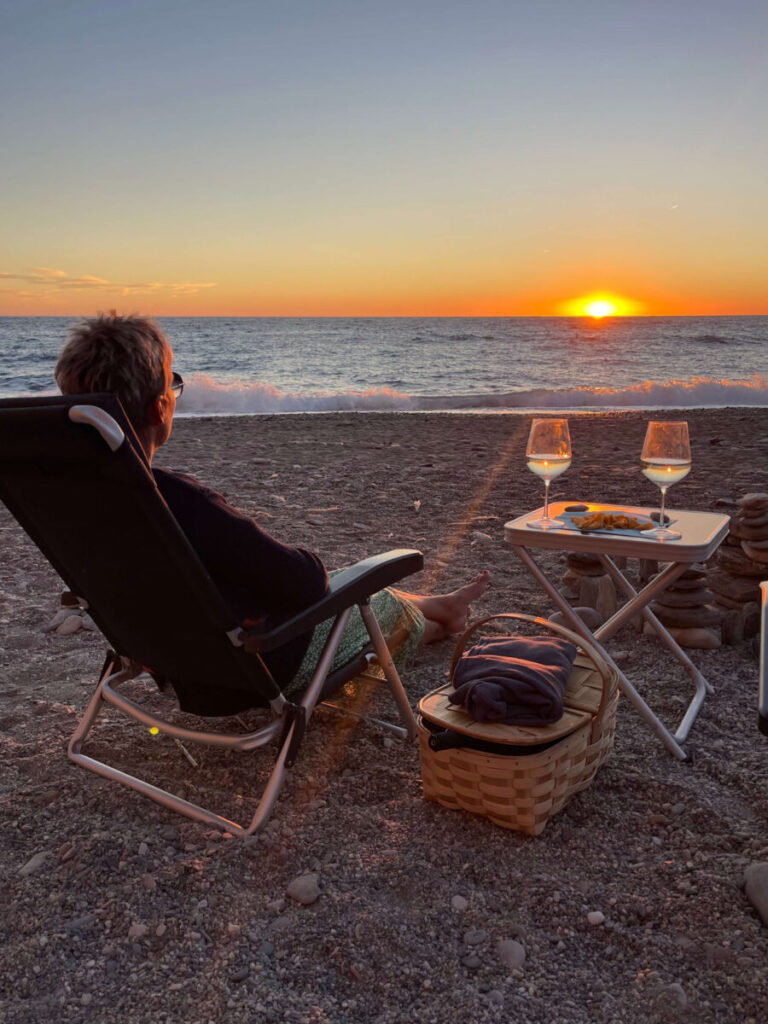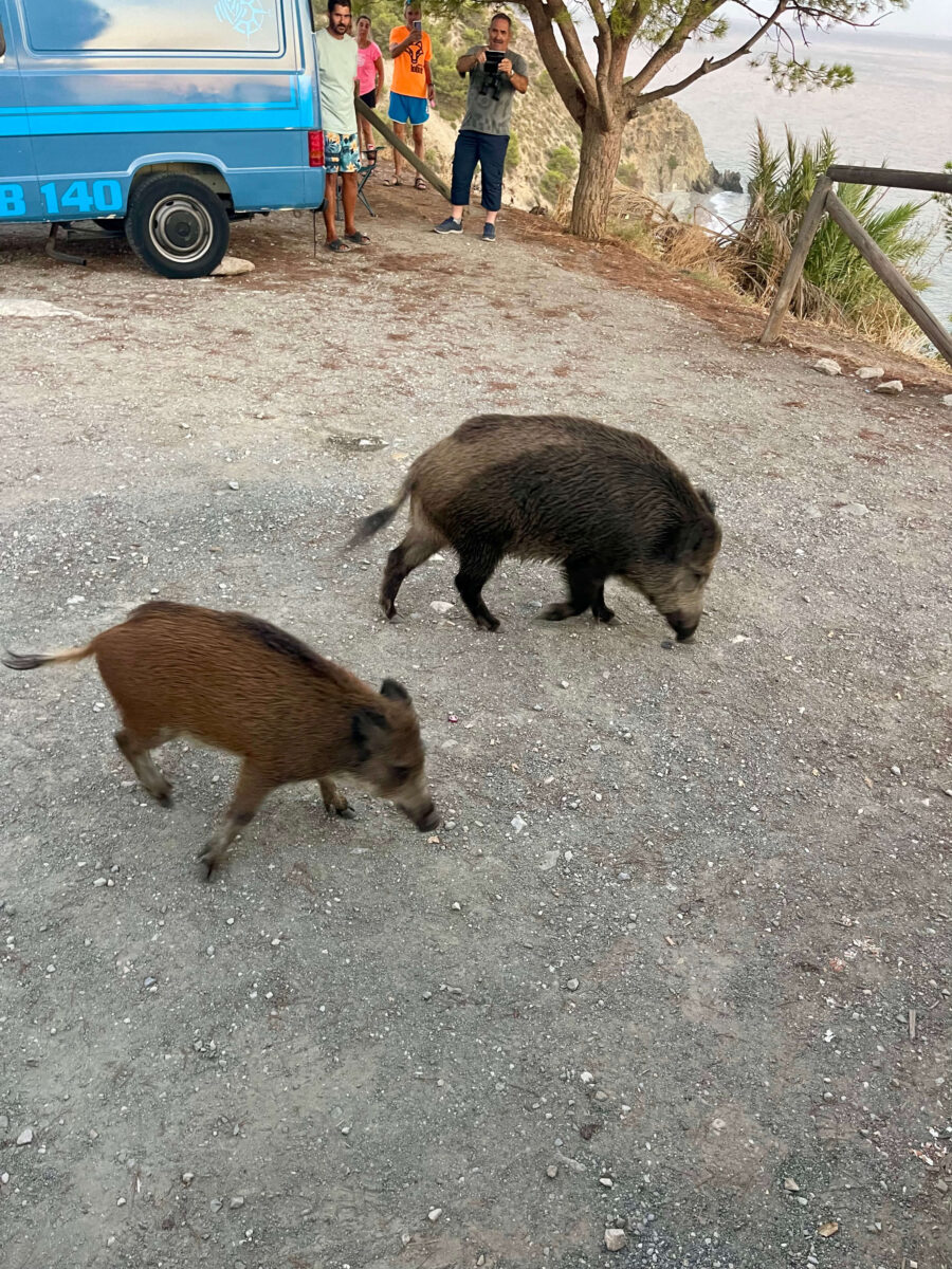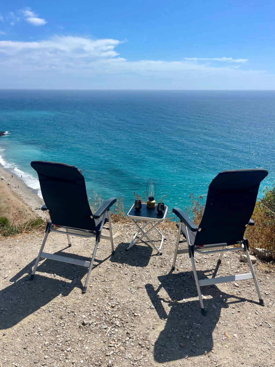 Strandnært overnatningssted ved Beach Cantarriján, som vi har besøgt flere gange. Stranden er virkelig lækker og omgivet af flot natur. I venstre side af stranden er der en klippe med et hul ind under, som fører videre til endnu en strand på den anden side. Vi vil dog anbefale at undgå weekender, da der ofte er mange mennesker. Restaurante La Barraca var meget travl, og vi endte med at spise i camperen.
