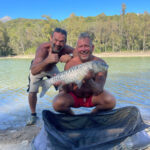 Overnatningsspot ved Emerita Augusta Reservoir, hvor vi fandt en plads i skyggen tæt på vandet. Her nød vi kolde drikke ved Chiringuito Lago Pinar, mens vi sad og så de lokale bade og nyde dagen.