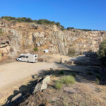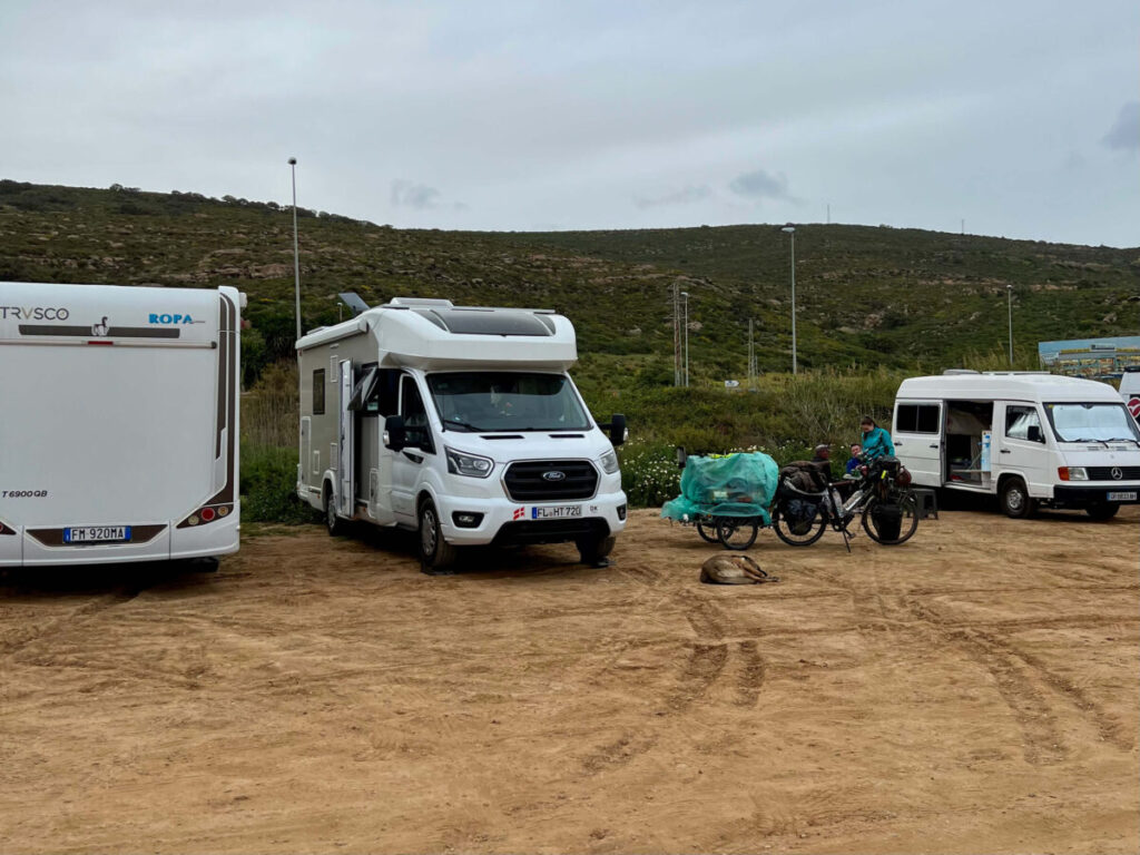 Overnatning på grusvej ved Tarifa Beach. Et sted vi kun brugte til én nat, da surferfællesskabet fylder meget i området – også på stranden. God stemning, men ofte livligt. Ingen service.