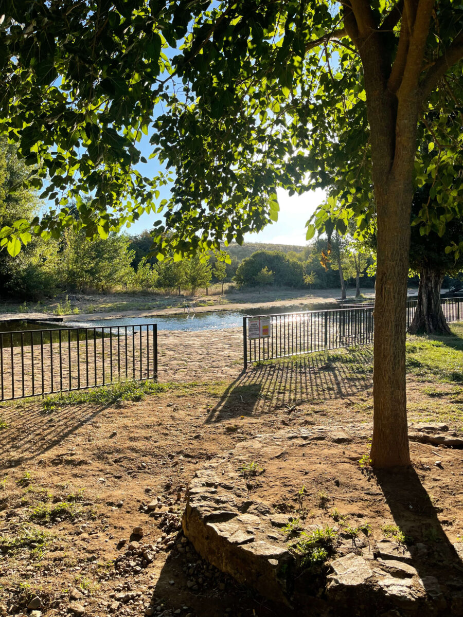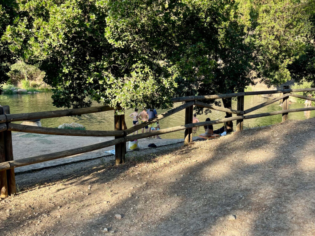 Besøg ved Piscina Natural de Villasbuenas de Gata – et virkelig hyggeligt og afslappet sted midt i Extremaduras indland. Parkeringspladsen ligger naturligt mellem en masse træer, som giver god skygge og gør stedet behageligt, selv på varme dage. Stemningen er rolig og autentisk, og man mærker hurtigt, at livet leves i et andet tempo end ude ved kysterne.