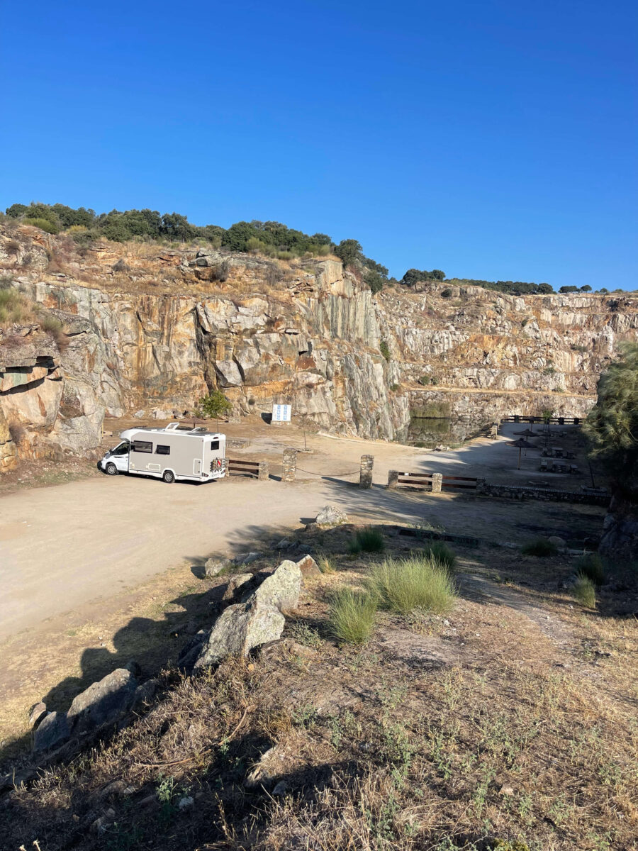 Vi holdt flere forskellige steder hele vejen rundt om Embalse Baños de Montemayor og tilbragte omkring 14 dage i området. Et rigtig dejligt område med ro, natur og gode muligheder for at skifte pladser undervejs.