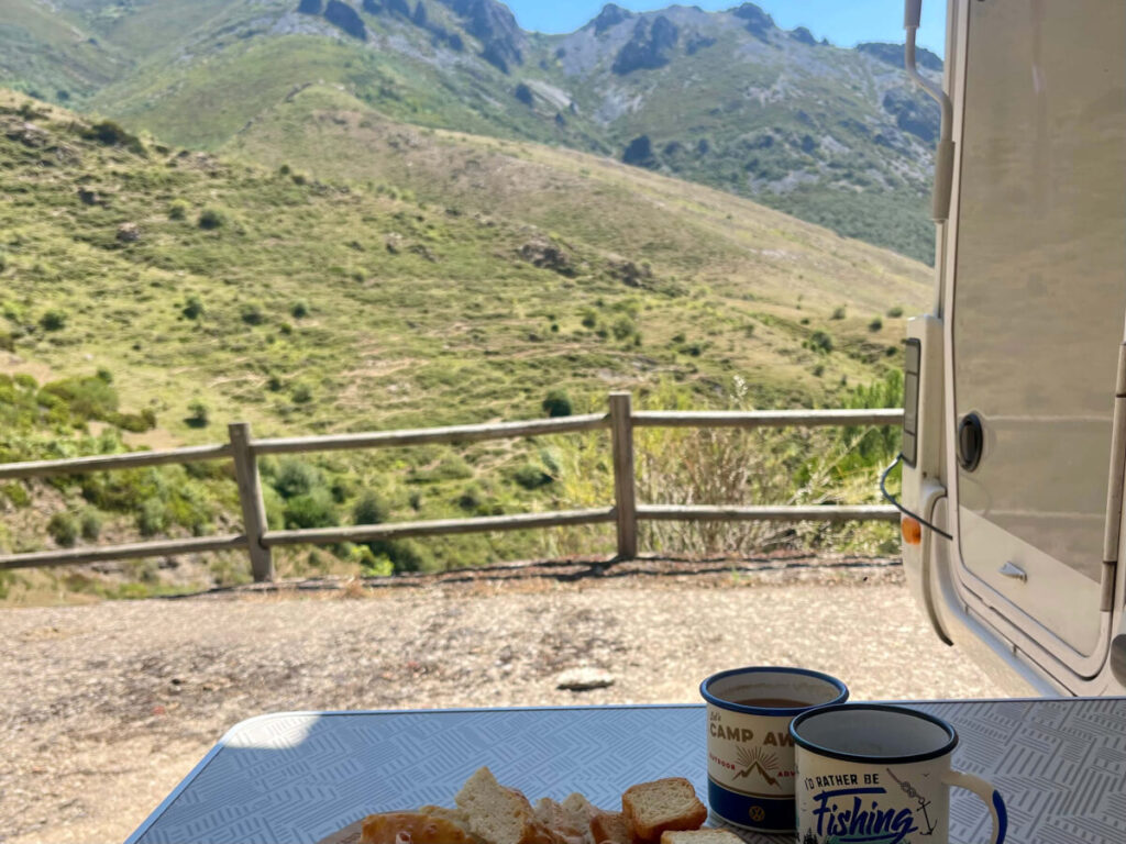 Området er kendt for sit rige dyreliv, og her yngler omkring 20 par gribbe i klipperne. Det er en vild oplevelse at ligge og sole sig, mens de store fugle svæver lydløst hen over én. Som prikken over i’et blev vi også overrasket af en ko, der pludselig stod bag camperen, mens vi lavede mad – et øjeblik, der siger alt om stedets landlige ro.