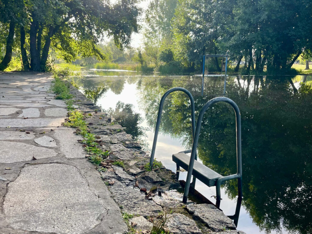 En naturlig pool i rolige omgivelser med et dejligt område til motion og bevægelse. Et fint sted til et stop, hvis man gerne vil kombinere natur, vand og lidt aktivitet undervejs.