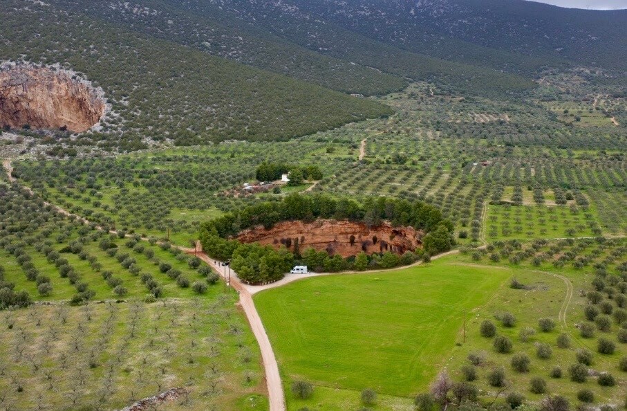 Vi besøgte de helt særlige jordfaldshuller (doliner) nær landsbyen Didyma i det østlige Peloponnes – et fascinerende naturfænomen, hvor jorden er kollapset og har dannet enorme, cirkulære fordybninger.