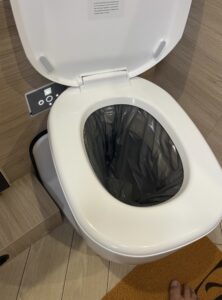 Clesana C1 er et vandfrit toilet, hvor affaldet håndteres i specialposer, som svejses lufttæt direkte i toilettet.