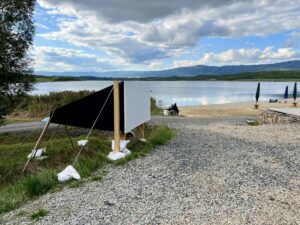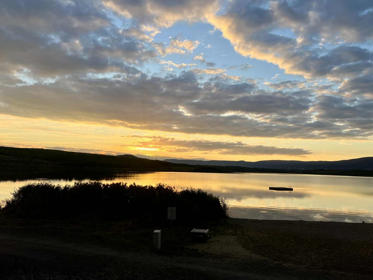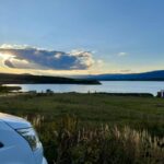 Som så mange andre dage hvor vi skal finde et overnatnings sted, leder vi på Google Maps efter steder tæt på søer hvor vi kan overnatte med vores camper, så det var et rent tilfælde, at vi fandt stedet.Vi søgte bare efter en sø, hvor vi kunne parkere med udsigt til vandet og samtidig få et godt område at cykle og løbe i.