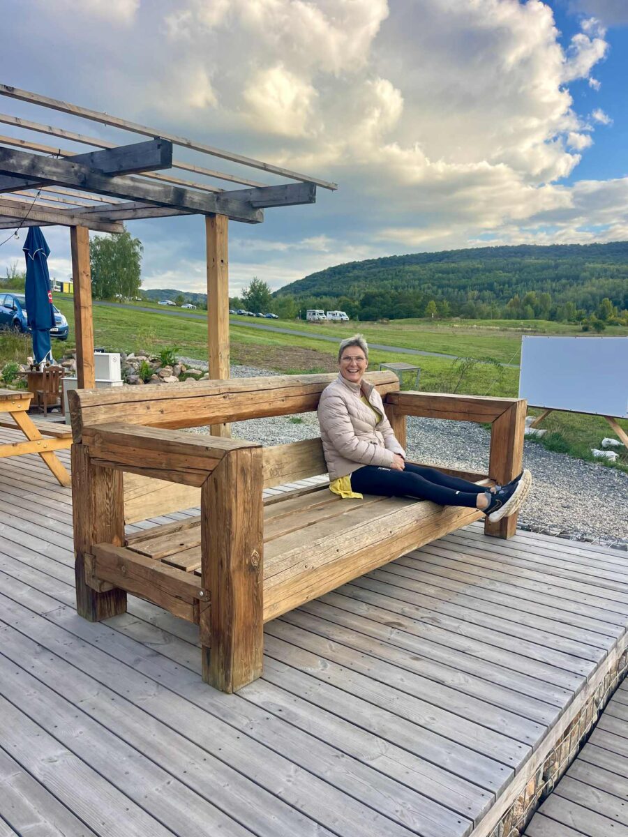 Vi satte os på en bænk, solen lunede os, og vi nød et par timer, hvor vi endda så solnedgangen.