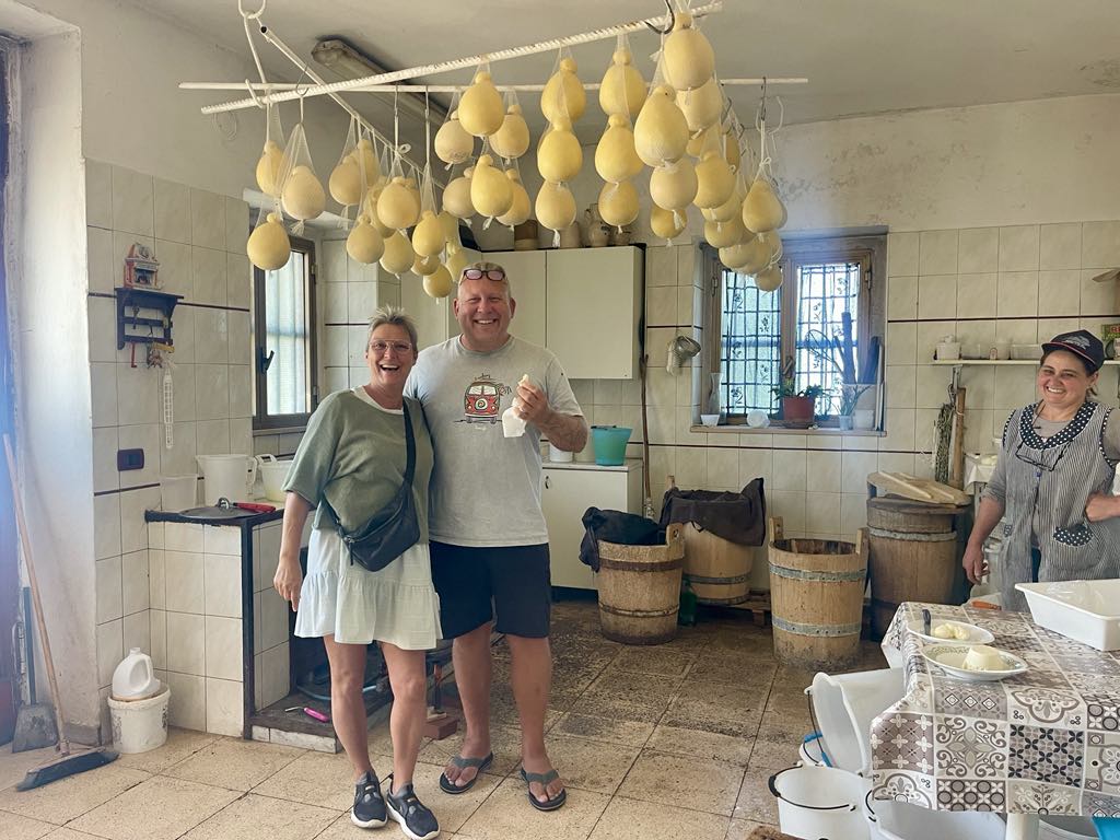 Allerede dagen efter vores ankomst dukkede den samme venlige mand op igen. Denne gang spurgte han, om vi havde lyst til at tage med på en køretur for at se, hvordan de laver den lokale gedeost, Pecorino. Det sagde vi selvfølgelig ja til – sådan en oplevelse siger man ikke nej til.