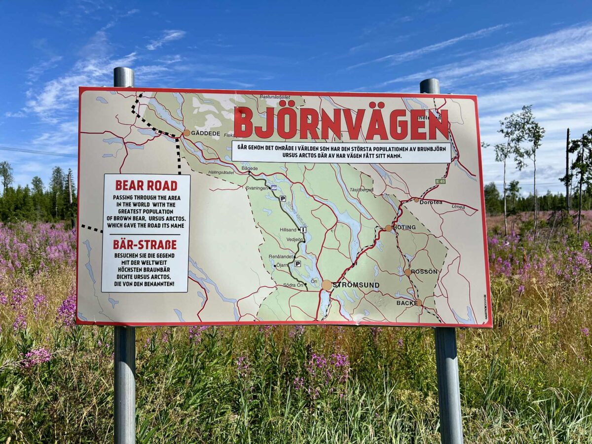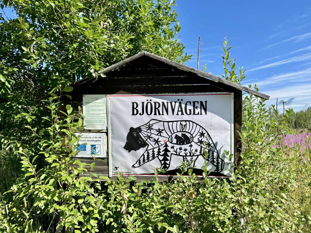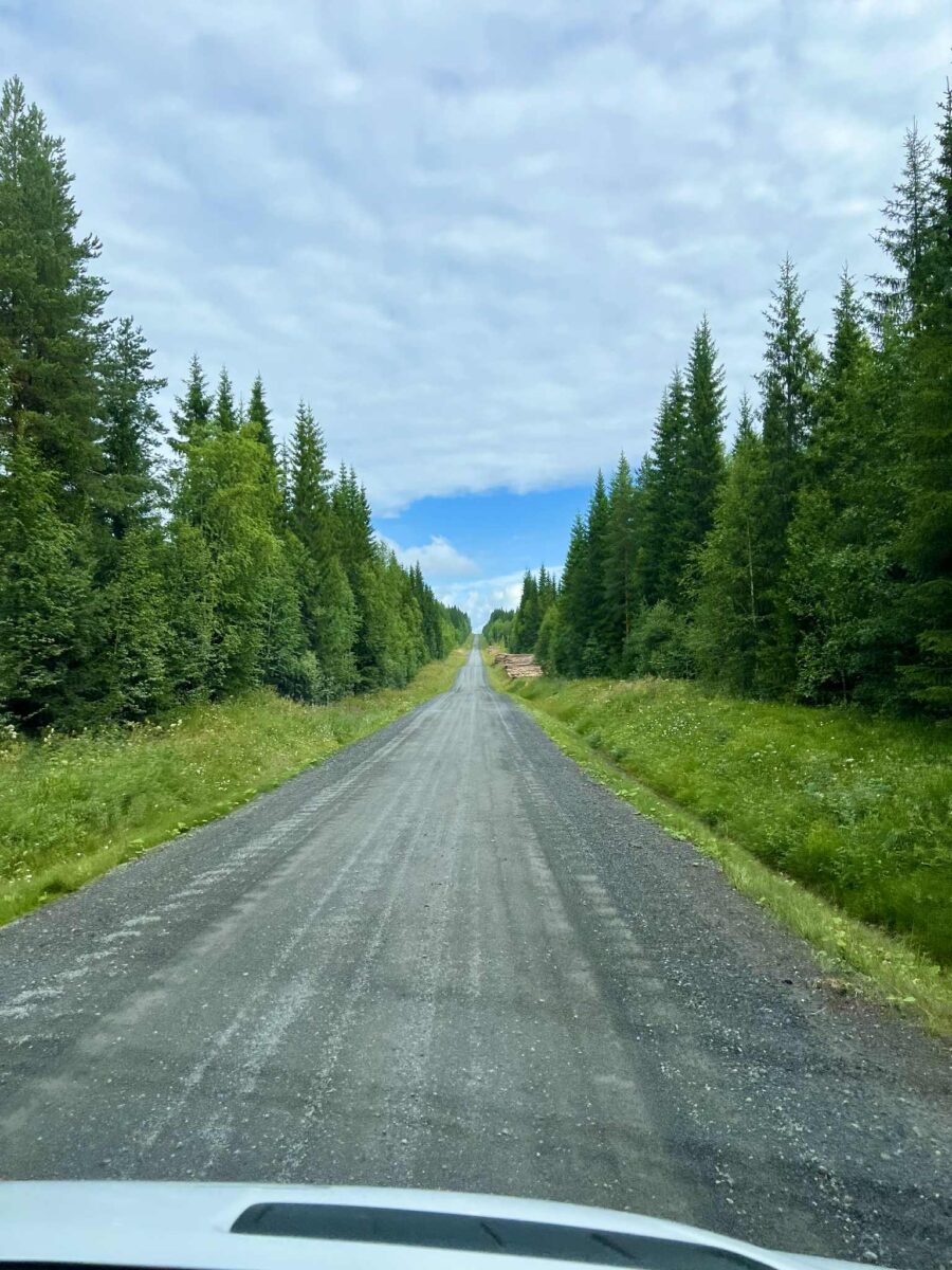Vi har valgt at køre ruten med uret rundt, og lige nu befinder vi os på den stemningsfulde Björnvägen, dybt inde i skoven. Som du måske ved, har vi det med aldrig helt at følge “den oprindelige rute man kan køre”. Vi tager små afstikkere, lytter til mavefornemmelsen – og ikke mindst til dem, der kender området bedst: de lokale.
