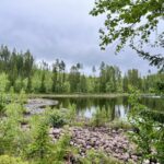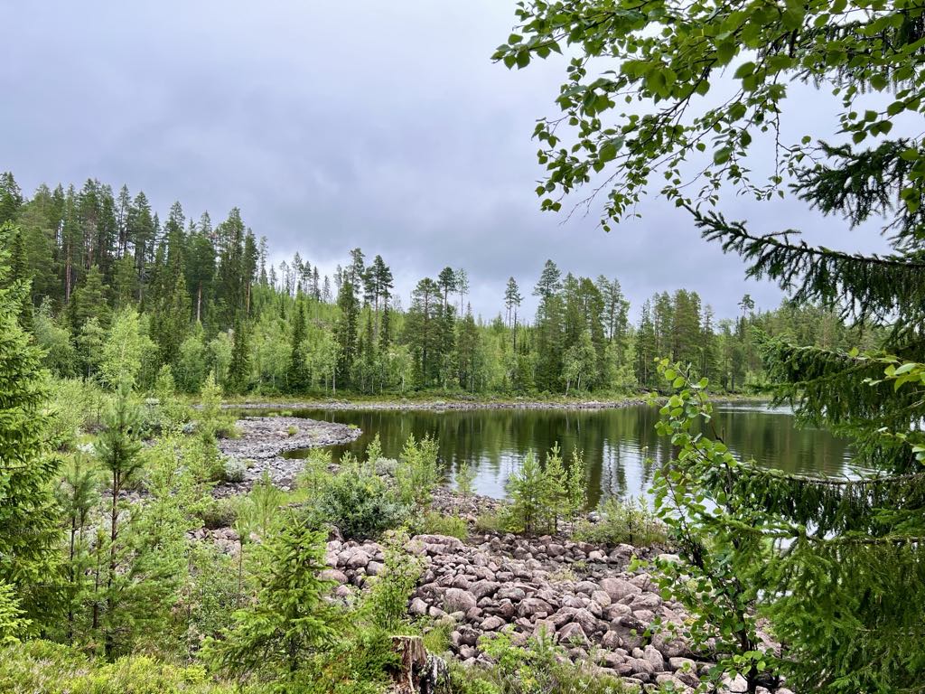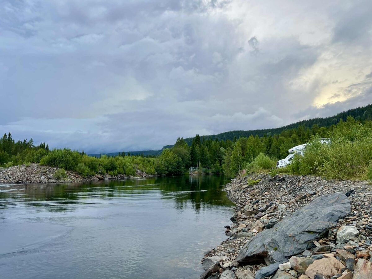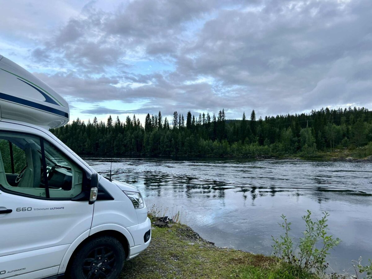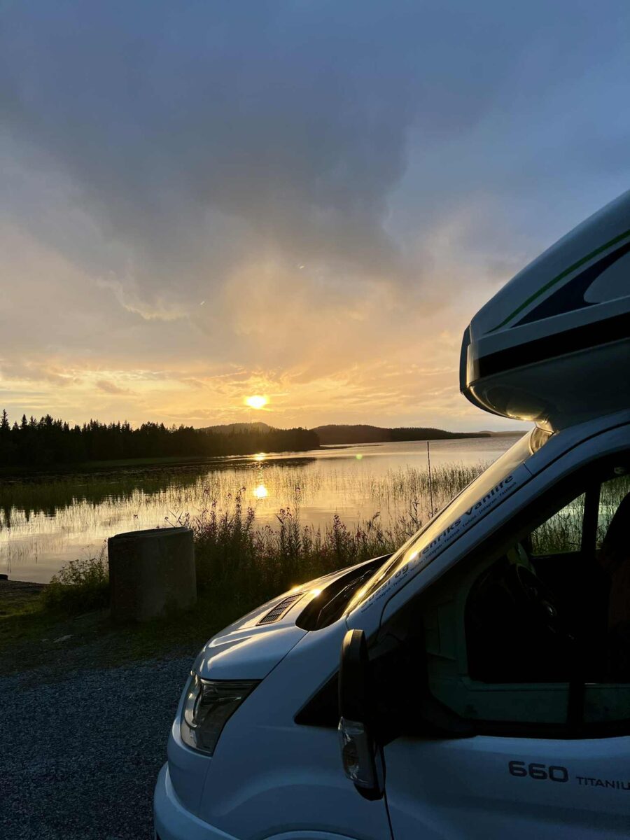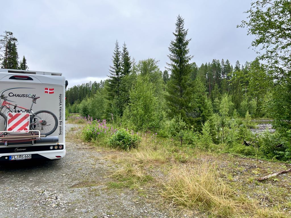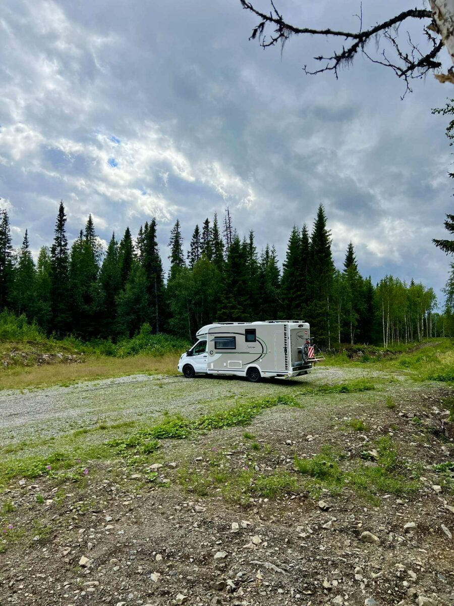 Vi er kørt videre på vores eventyr gennem Sveriges dybe skove og har nu fundet endnu et fantastisk sted at overnatte. Igen har vi forladt den “officielle rute” og taget en afstikker – og det føles helt rigtigt. Denne gang er vi landet et sted, hvor vi har udsigt til en fredelig sø, omgivet af høje træer og spejlblankt vand.