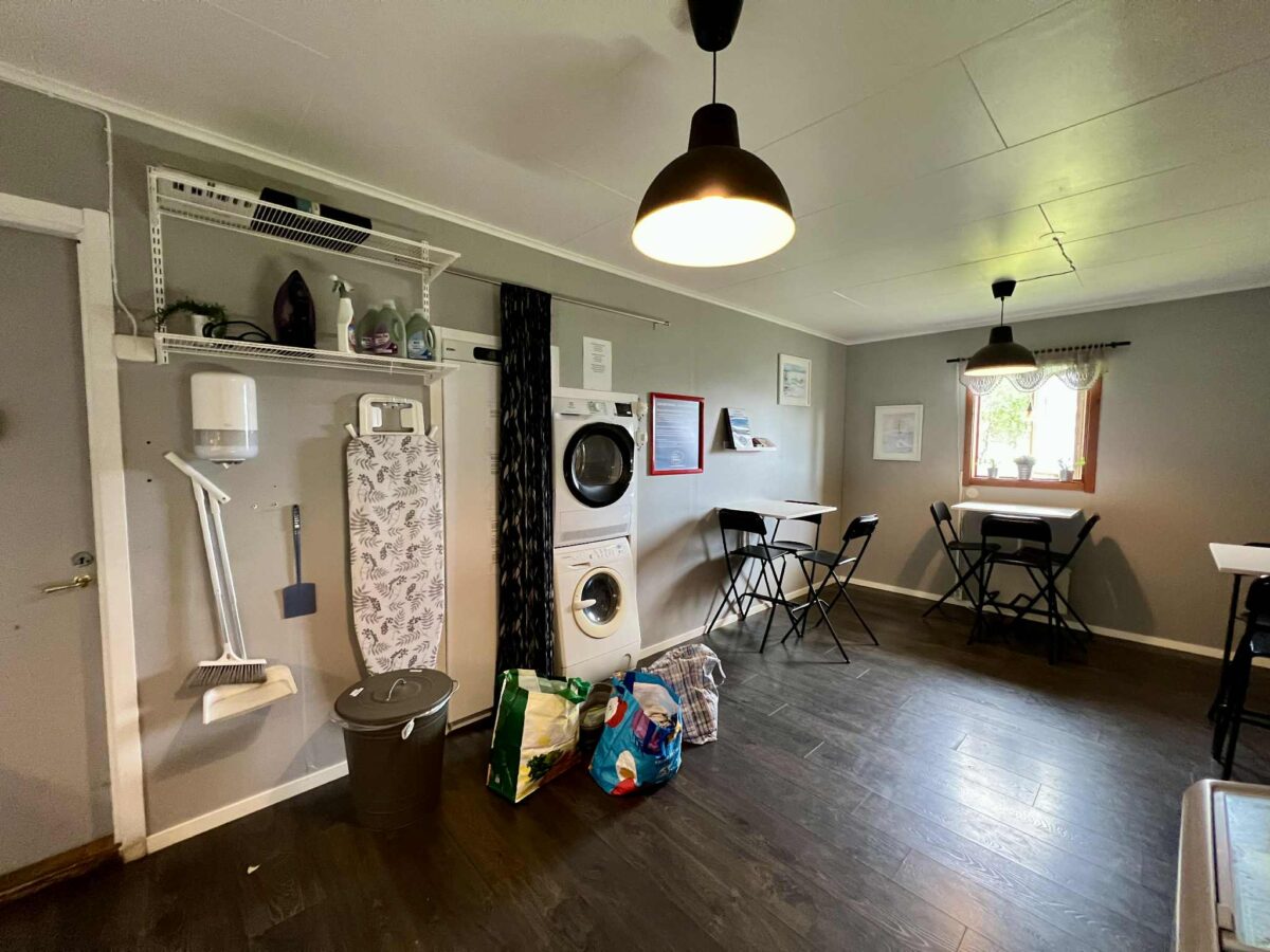 På vores fjerde overnatning langs Vildmarksvägen fandt vi en af rutenes mest praktiske og hyggelige stop. Vi valgte netop Camp Stora Blåsjön for at få vasket i bund efter flere dage på landevejen – og her var det muligt takket være både vaskemaskine og tørretumbler.