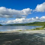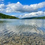 Foran os lå søen spejlblank, krystalklar og omgivet af skovklædte bakker, hvor skyerne svævede lavt hen over trætoppene. Vi kunne parkere helt ned til vandkanten, og det føltes næsten som om, vi havde fået vores helt egen ø midt i vildmarken.