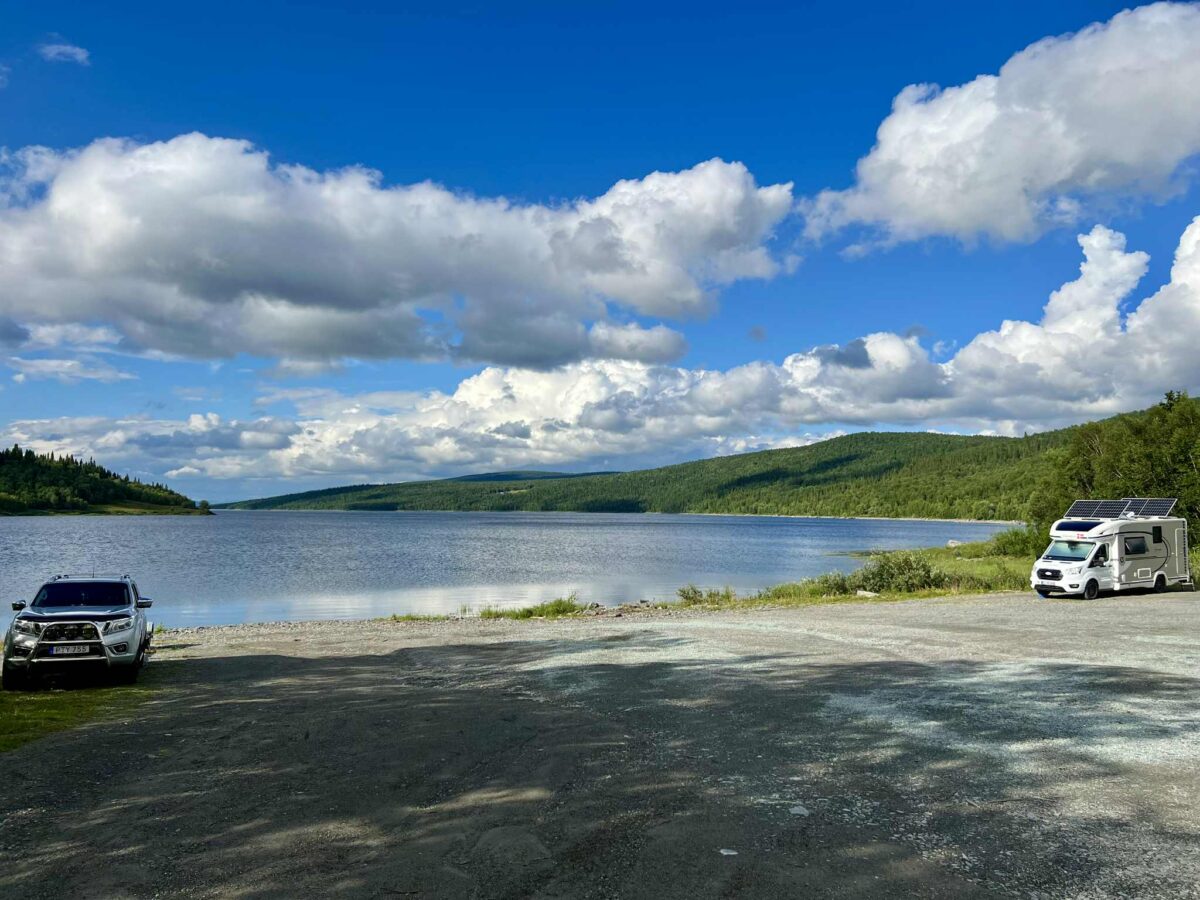 Vildmarksvejen er som skabt til autocamperlivet. Mange steder kan du stå gratis og vildt – med udsigt over søer og fjeldlandskab. Det føles som frihed i sin reneste form.