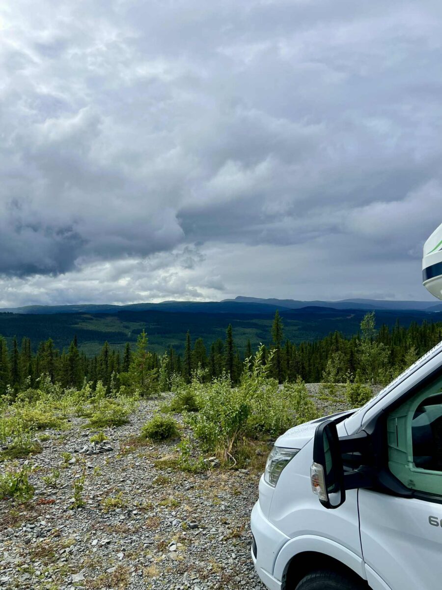 På Vildmarksvejen er der mange smukke steder, men vores tredje overnatning blev noget helt særligt. Vi fik tippet om stedet af et sødt dansk par, vi mødte tidligere på ruten – og da vi trillede ind, troede vi næsten ikke vores egne øjne.