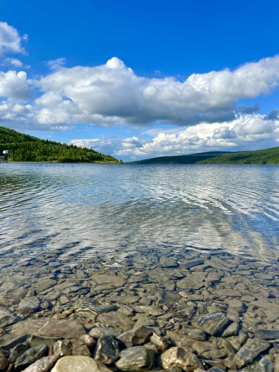 Vandet i søerne omkring Vildmarksvejen er friskt og rent – men også koldt, især i fjeldområderne. Om sommeren kan temperaturerne i lavere liggende søer komme op på 15–20 grader, mens de højere bjergsøer sjældent kommer over 10–12 grader. Men tro os – det er det hele værd!